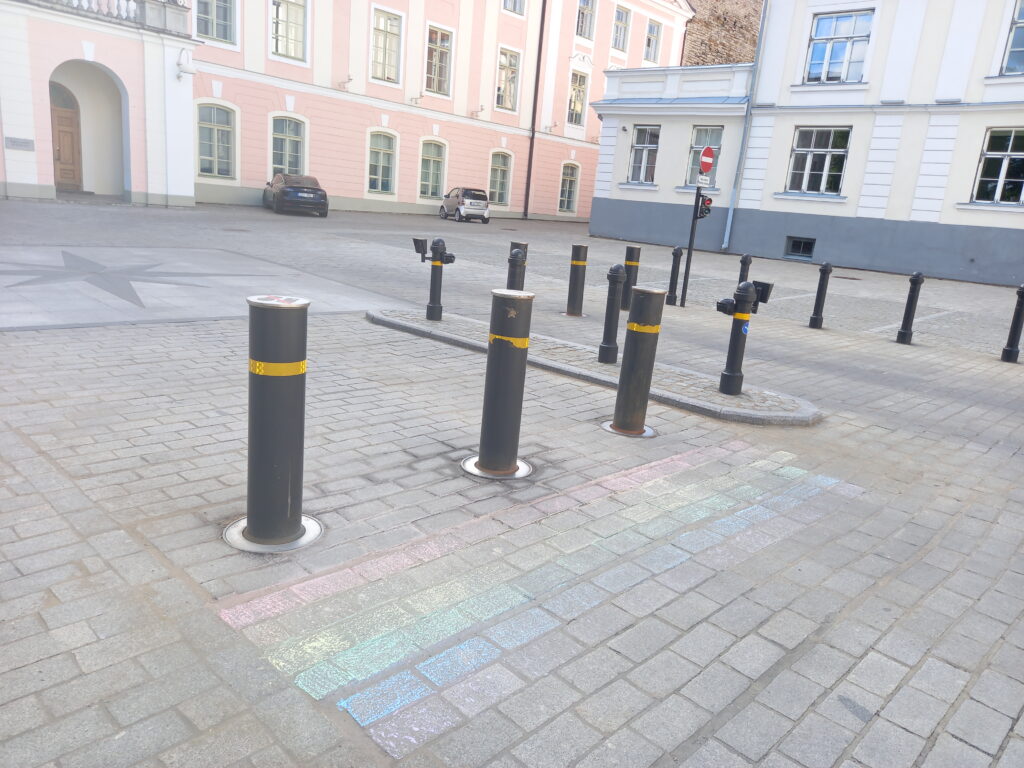 Õhtupäikese säras laius täna Riigikogu sillutisel uhke kriitidega joonistatud vikerkaarelipp, mis riigikogulastele ja meeleavaldajatele kindlasti meele rõõmsaks teeb.