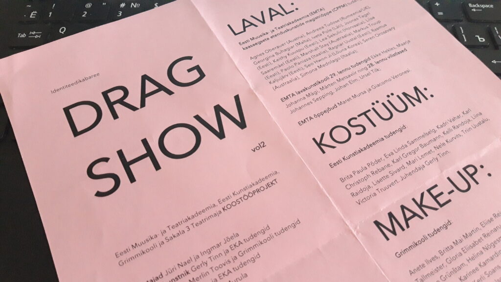 2019 aasta viimastel päevadel toimus hüperglamuurseks sätitud Sakala 3 teatrimajas pöörane kabareeetendus DRAG SHOW vol2 , kus oma alter egodena astusid üles lavakunstikooli näitlejatudengid.