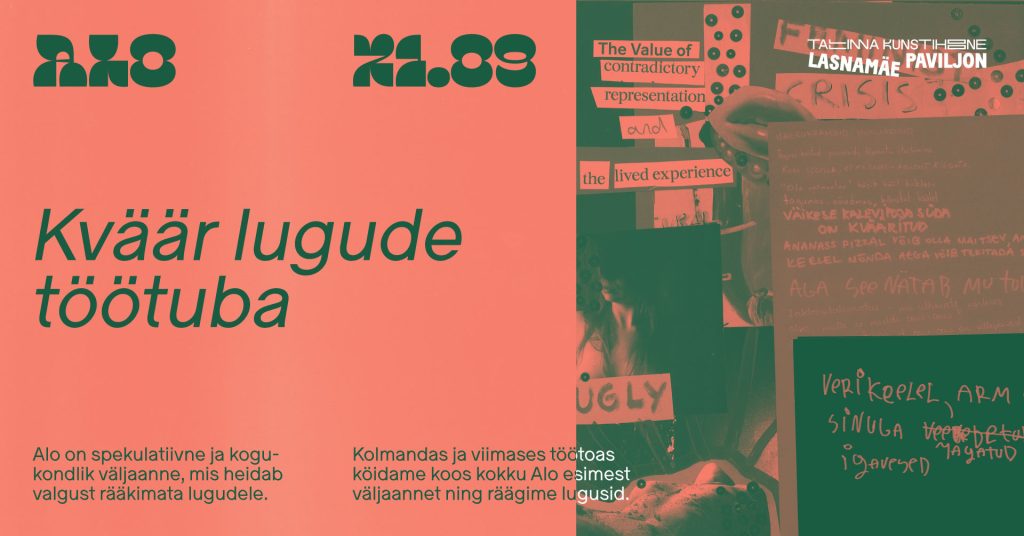 Neljapäeval, 21. septembril kell 19.00 toimub Tallinna Kunstihoone Lasnamäe paviljonis esimese ALO väljaande lugemise ja köitmise töötuba.